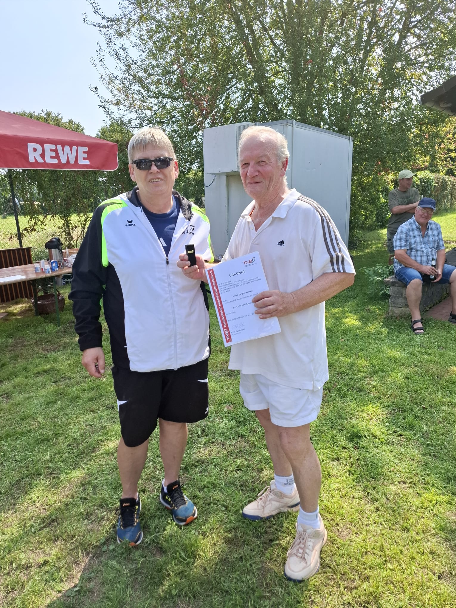 Ein weiterer besonderer Moment des Tages war die Ehrung unseres Ehrenpräsidenten Jürgen Weinert. Er wurde vom Tennisverband Niedersachsen-Bremen e. V. mit der goldenen Ehrennadel für seine hervorragenden Verdienste um die Förderung des Tennissports ausgezeichnet. Diese Ehrung würdigt unter anderem seine außergewöhnliche Leistung von 50 Jahren als erster Vorsitzender des TC 75 Schladen e. V., in denen er den Verein maßgeblich geprägt und entwickelt hat.
